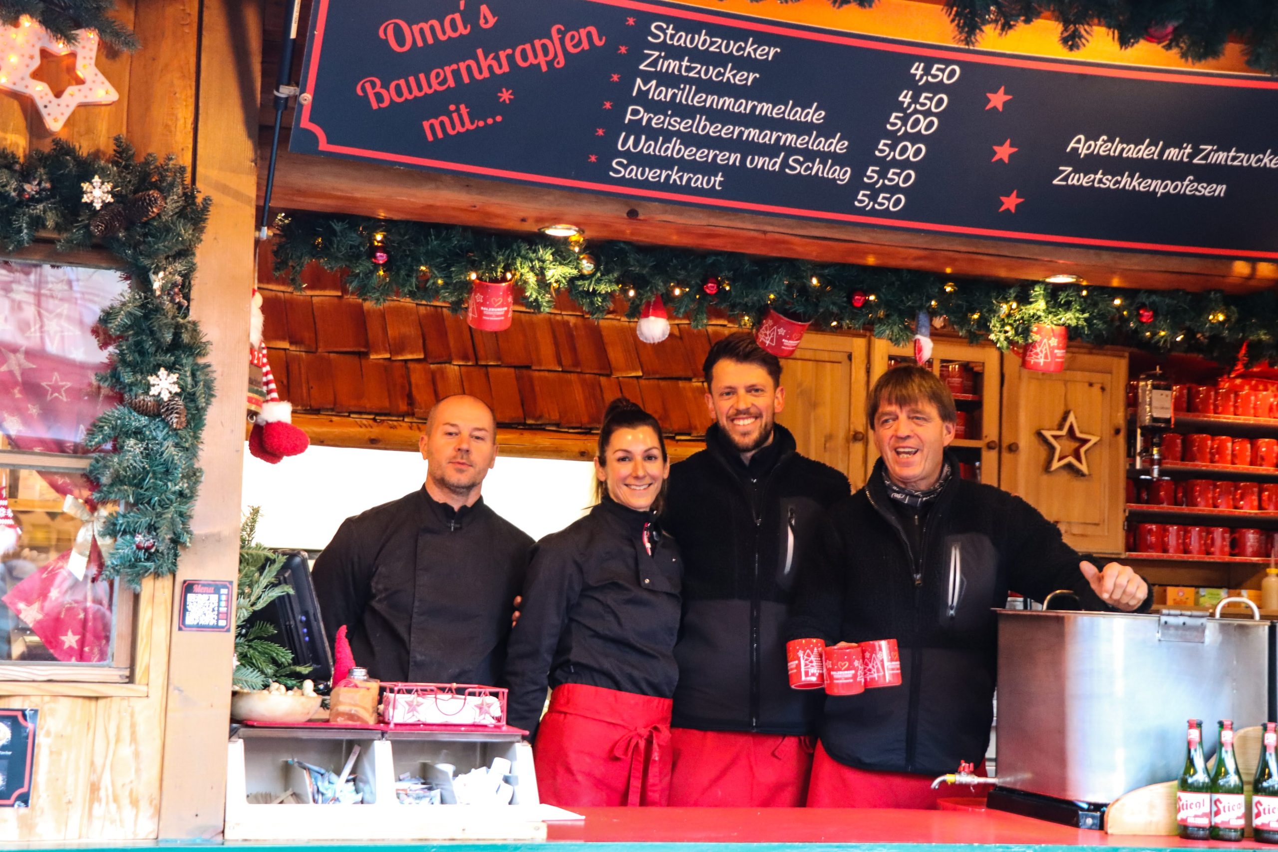 Charmant. Herzlich. Echt. Und seit über 35 Jahren fixer Bestandteil am Salzburger Weihnachtsmarkt am Mirabellplatz – die Familie Neureiter & das Team der Christl-Alm.