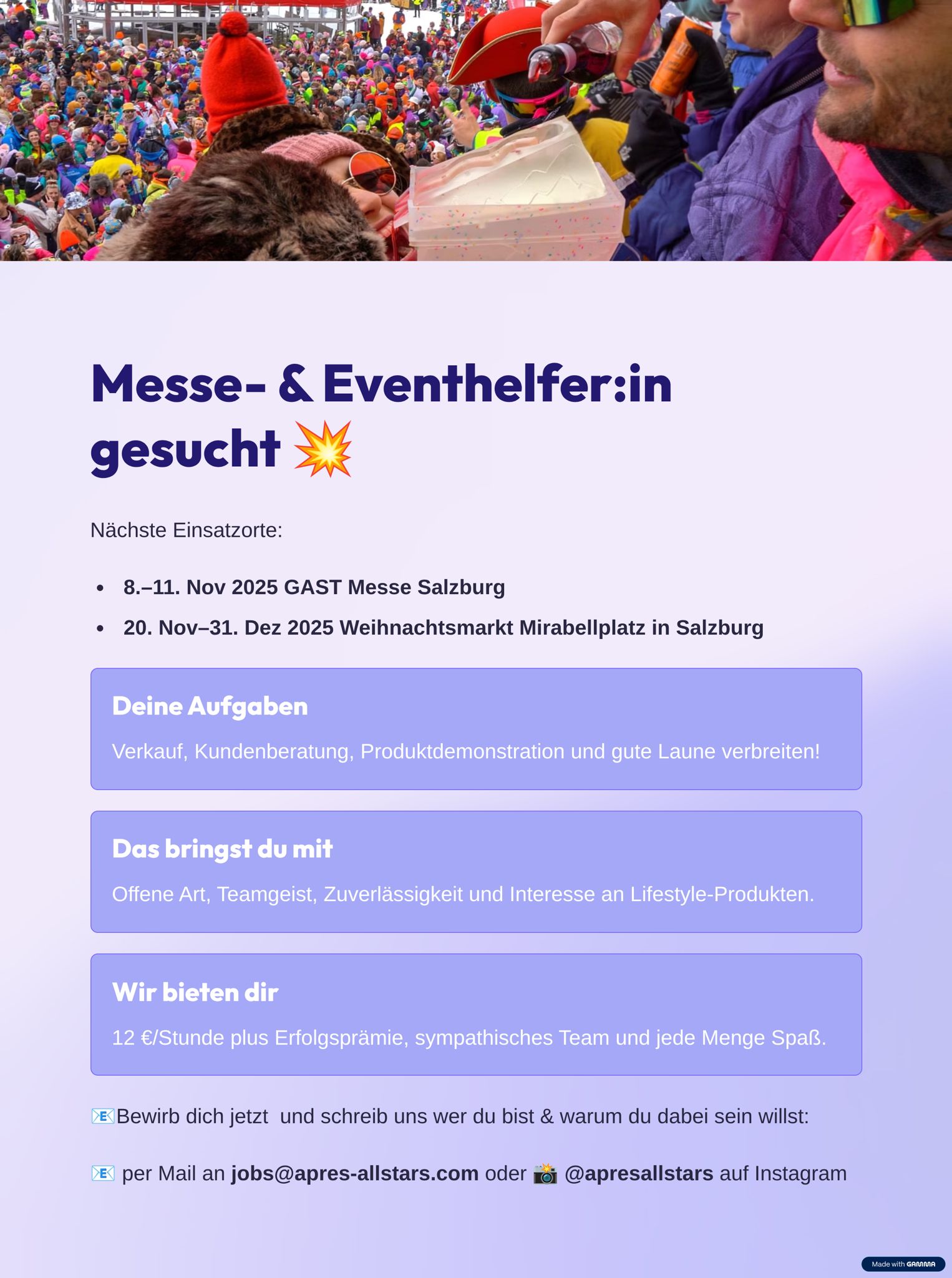 Du liebst die Adventszeit, magst den Kontakt mit Menschen und arbeitest gerne in stimmungsvoller Atmosphäre? Dann bist Du bei uns genau richtig!